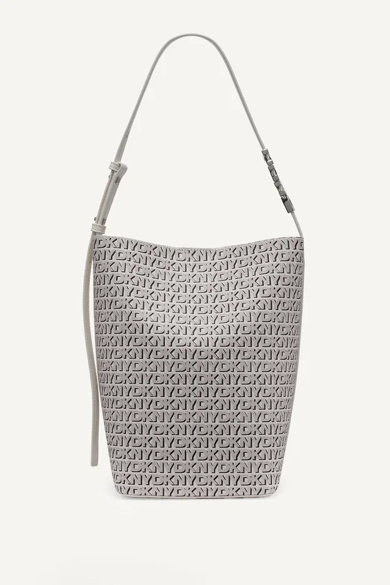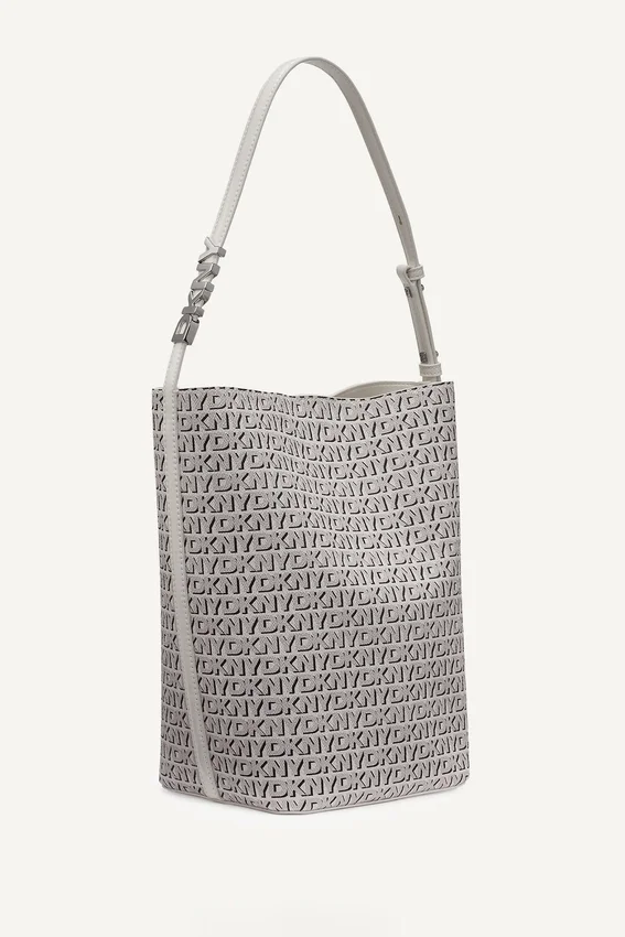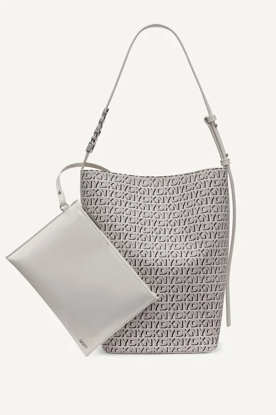 Avril Logo-Print Bucket Bag Silver Hardware; Unlined Detachable Pouch; Adjustable Shoulder Strap; Magnetic Snap Fastening Faux Textured Nappa Leather: Main: 100% Polyvinyl Chloride; Faux-Leather Trim and Interior: 100% Polyurethane Spot Clean with a Soft Cloth. Store in a Dust Bag. Imported Style #: R52J5J29