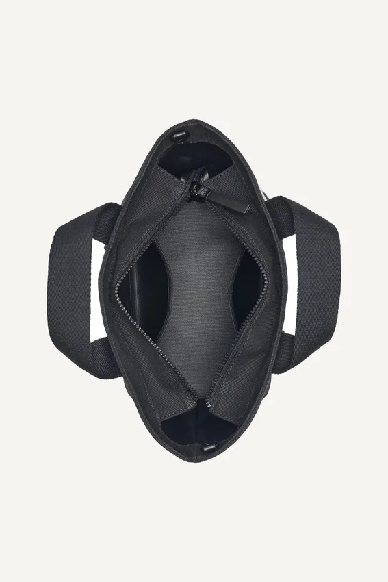 • Detachable, Adjustable Logo-Jacquard Webbed Shoulder Strap; Double Top Handles; Top Zip Fastening