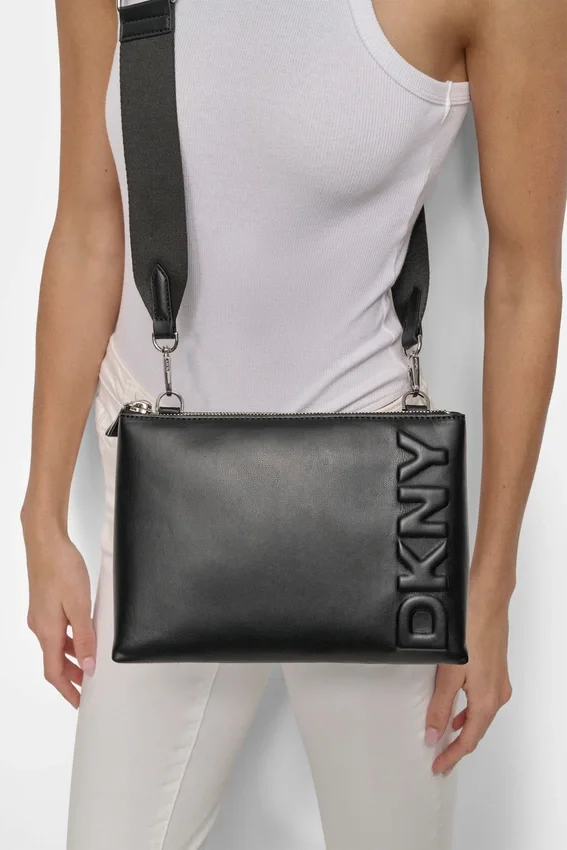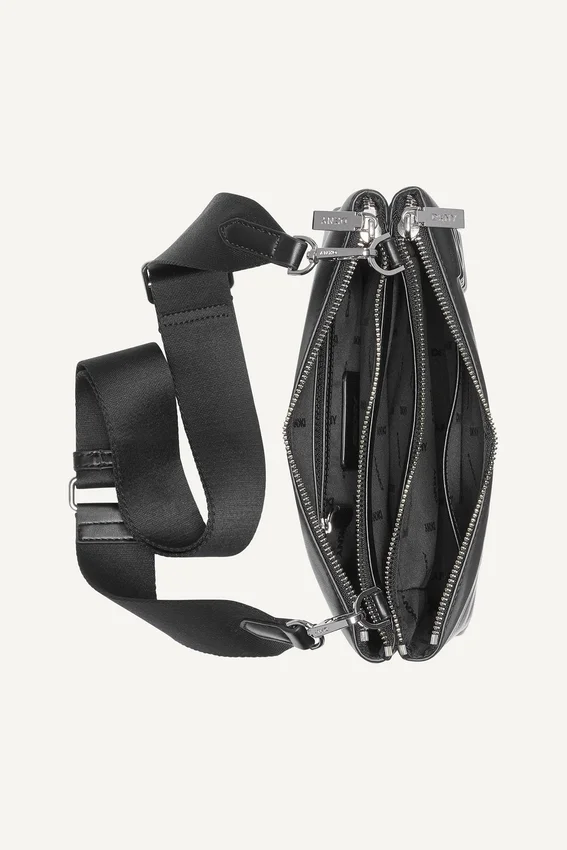 • Interior Slip and Zip Pockets; Detachable, Adjustable Crossbody Shoulder Strap; Zip Top Fastening