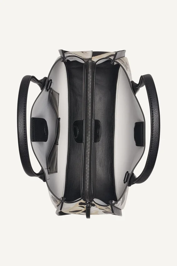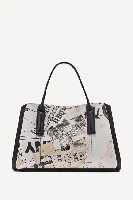 Josie Newspaper-Print Satchel Bag Silver Hardware Interior Back Slip Pocket Detachable Crossbody Shoulder Strap; Top Handle; Magnetic Snap Fastening Unlined Pebble-Grain Faux-Leather Exterior: 100% Polyurethane Gently Clean with a Damp Cloth and Mild Soapy Water, Then Wipe It with a Soft, Dry Cloth. Air Dry Completely