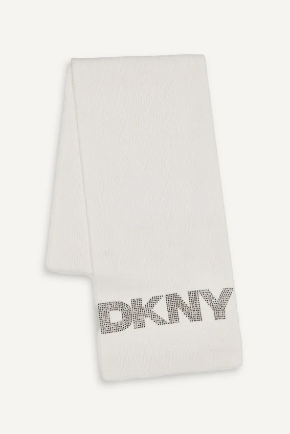 Lightweight, Cozy Scarf Perfect for Layering Dkny Logo Pattern Rhinestone Logo 90% Polyester / 10% Metallic Spot Clean with a Soft Cloth Origin: Imported Style: D5Ks1636