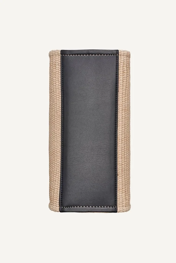 • Woven Straw Exterior: 70% Polypropylene, 30% Polyester; Faux-Leather Trim: 100% Polyurethane; Logo-Jacquard Lining: 100% Polyester