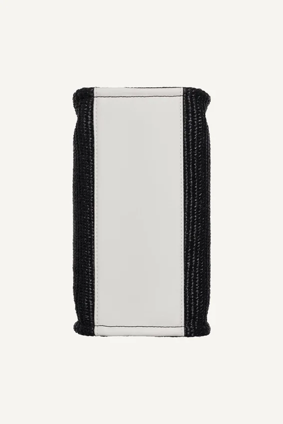 • Woven Straw Exterior: 70% Polypropylene, 30% Polyester; Faux-Leather Trim: 100% Polyurethane; Logo-Jacquard Lining: 100% Polyester
