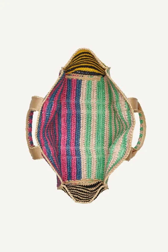 - Raffia Exterior: 100% Paper; Faux-Leather Trim: 100% Polyurethane