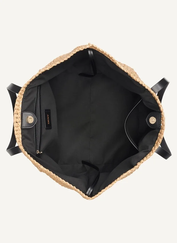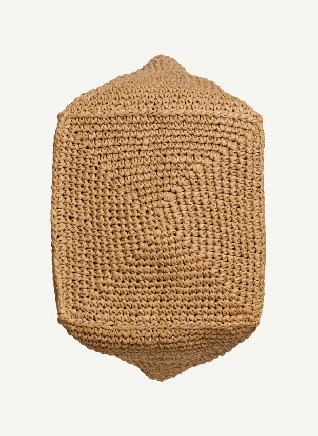 • Crocheted Straw Exterior: 100% Paper; Faux-Leather Top Handles: 100% Polyurethane; Lining: 100% Polyester
