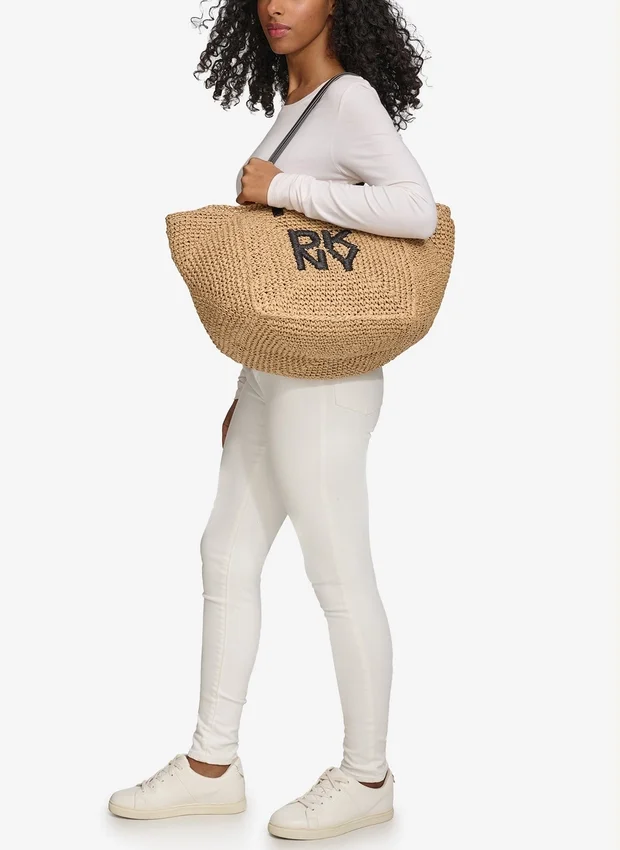 This Raffia Logo Tote is the Perfect Pick for All-Day, Chill Vibes, with Room for Your Favorite Read and Sleek Slides When the Temperature Rises.