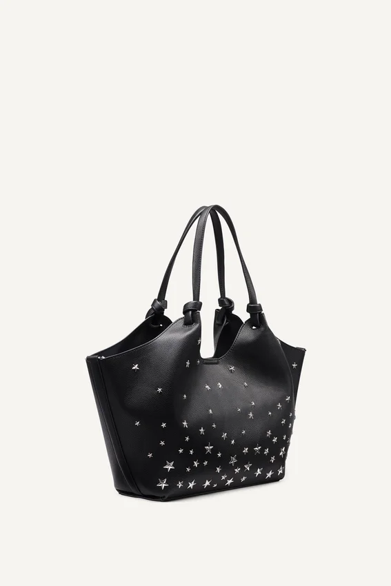 - Paula Rivet-Embellished Medium Commuter Tote with Detachable Pouch