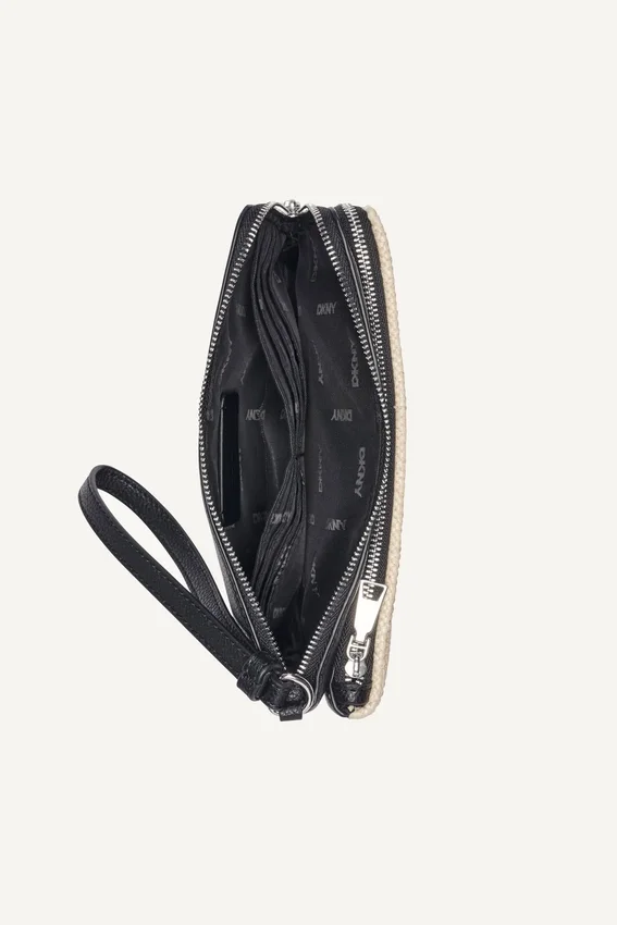 Designed for Effortless Organization, the Sarah Dual Zip Pouch Wristlet Features a Dual Zip Silhouette with a Convenient Wristlet Strap. Crafted in Paper Straw, It Offers a Lightweight, Seasonal Update to an Everyday Essential.