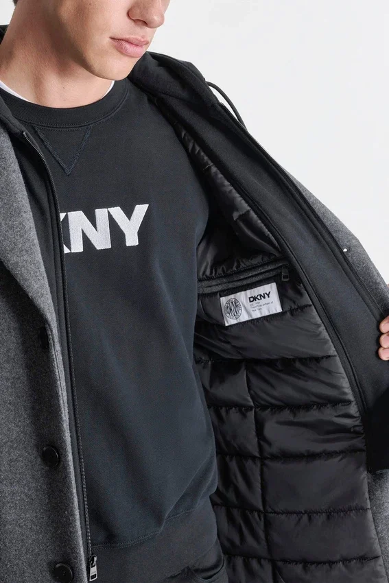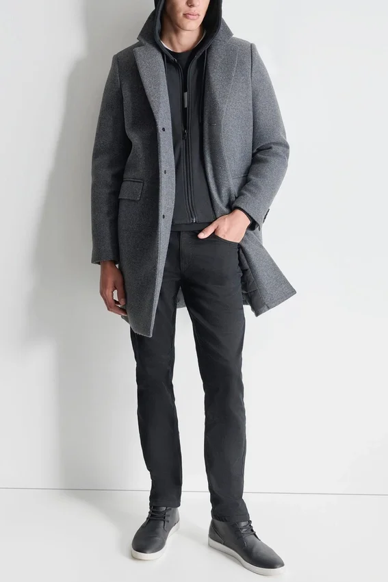 - A Sharp Outerwear Staple Crafted in a Faux Wool Blend with a Smooth Laminated Finish for Durability and Style.