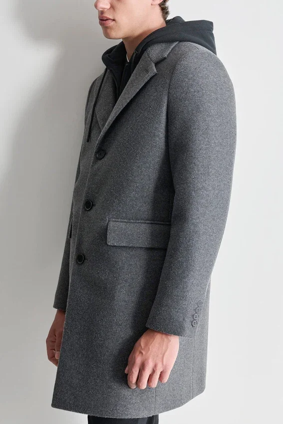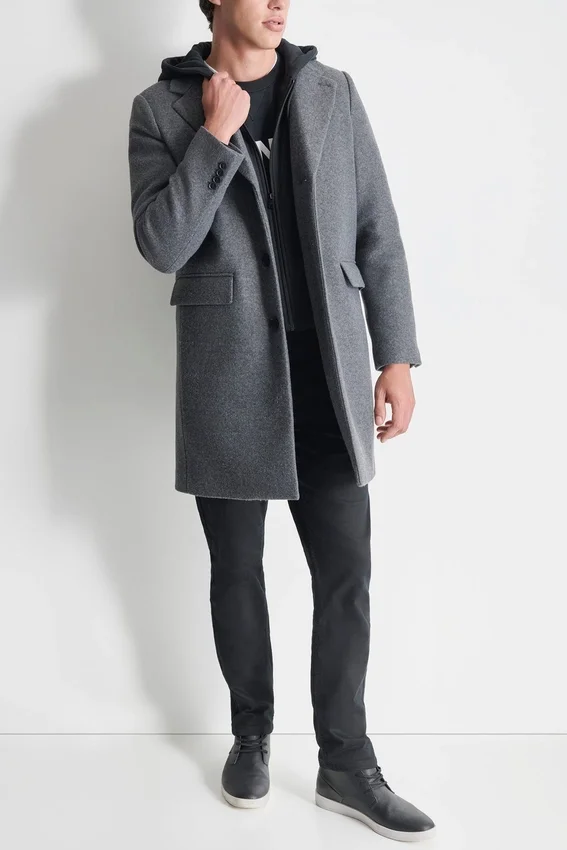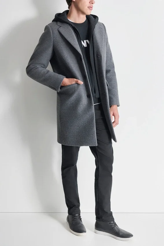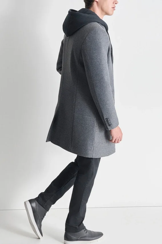Faux Wool Coat with Hooded Bib