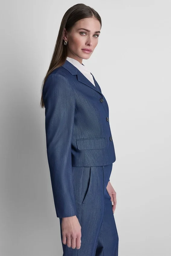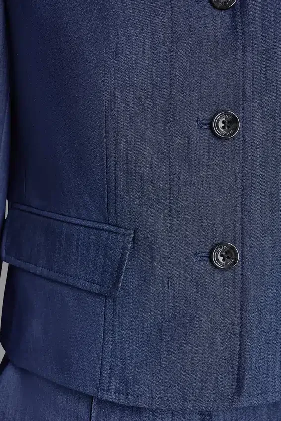 Refined and Versatile, This Woven Jacket is Crafted in a Stretch-Blend Fabrication for Comfort and Structure. Designed for Polished Layering, It’s Ideal for Professional or Elevated Everyday Styling.