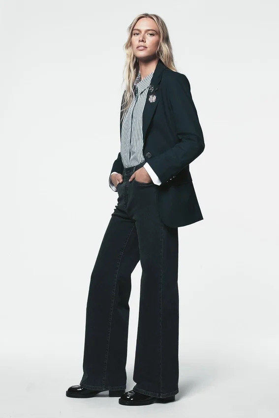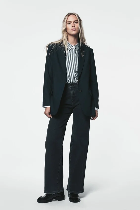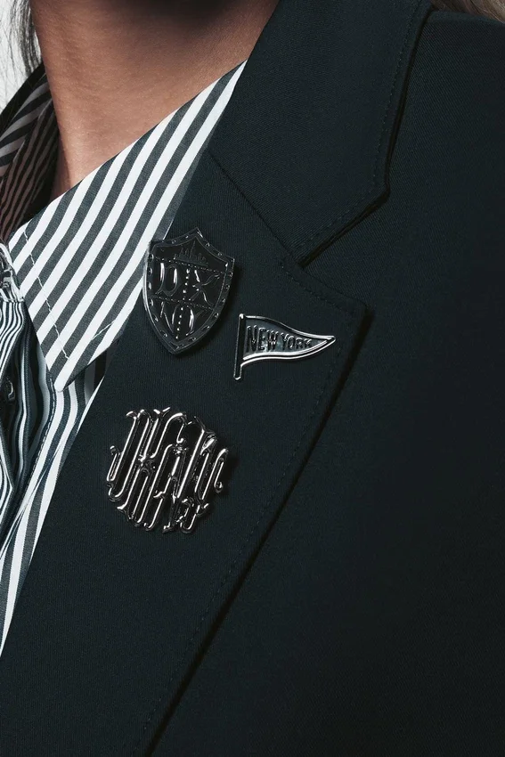 Two-Button Jacket Long Sleeves Tailored Silhouette Two-Button Front Closure Woven Construction 61% Reprocessed Polyester, 28% Viscose Rayon, 6% Elastane Spandex, 5% Polyester Pins Not Included Imported Style #: Ub6Jm542