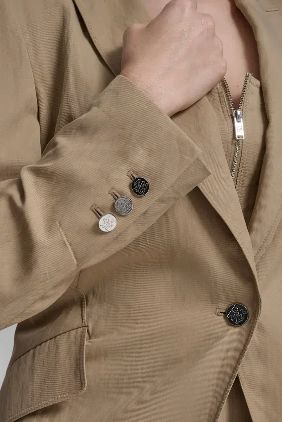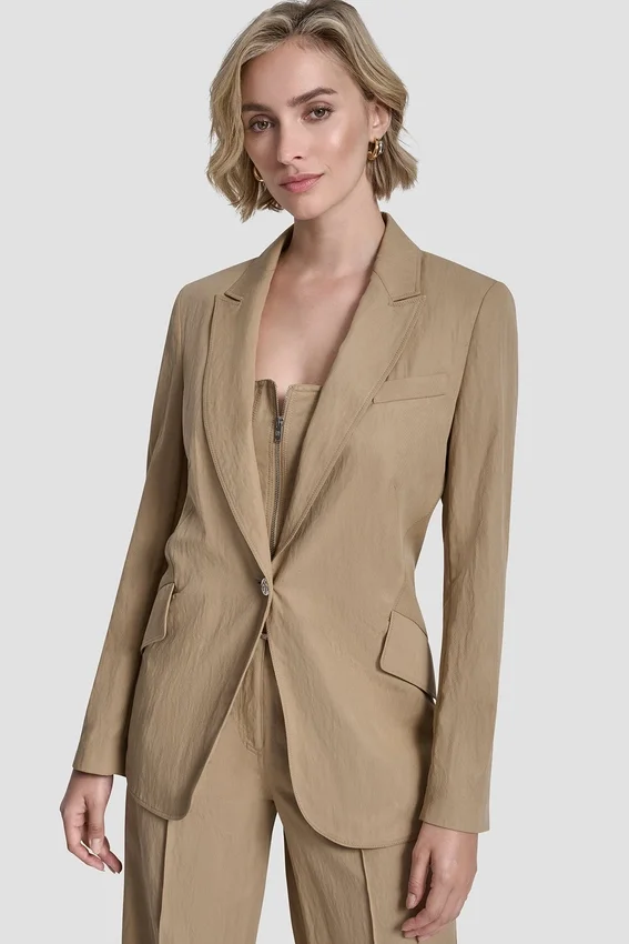 A Polished Wardrobe Staple, This Long-Sleeve Blazer is Crafted from Soft Tumbled Twill with Zigzag Stitch Detailing for Subtle Dimension. Designed with a Classic Collared Neckline and a Streamlined Button-Front Closure, It’s an Easy Layering Piece That Adds Structure to Any Look.