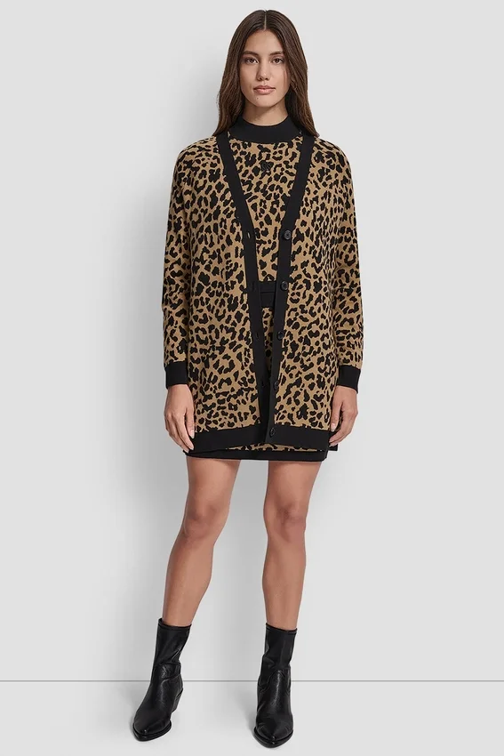 Ground This Standout Leopard Cardi with Polished Loafers and Easy-Going Trousers.