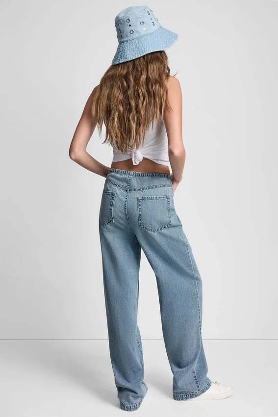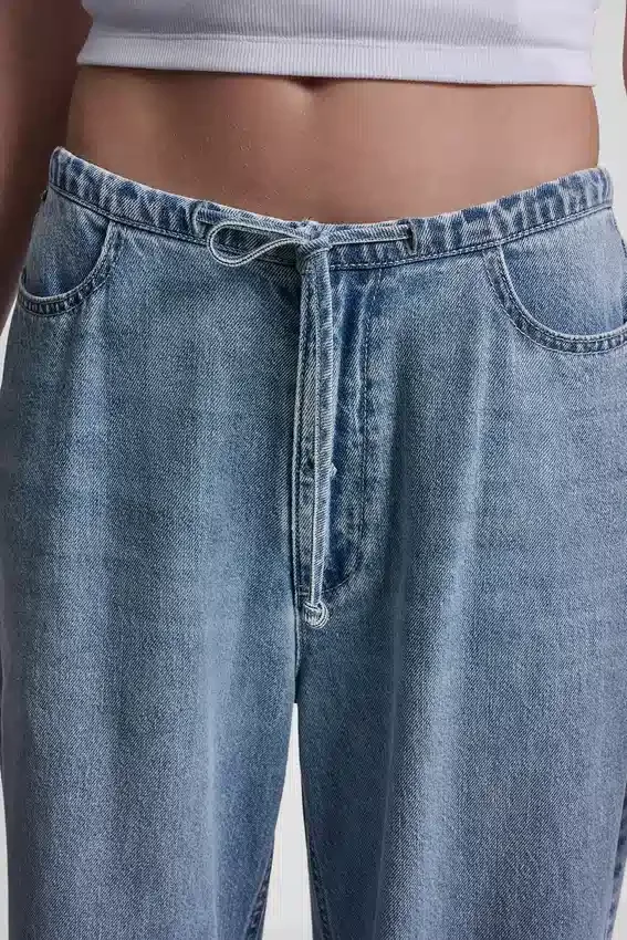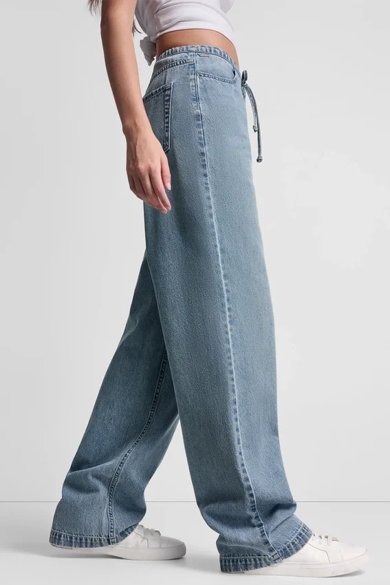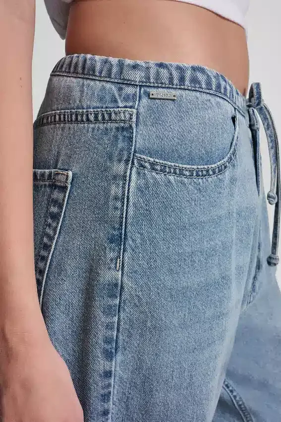 Effortlessly Relaxed, This Mid-Rise Pant Features a Flowy Straight-Leg Silhouette with a Drawcord Waistband for Adjustable Comfort. Crafted in Soft Denim, It Blends Casual Ease with Everyday Versatility.
