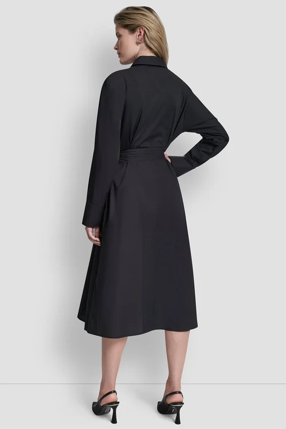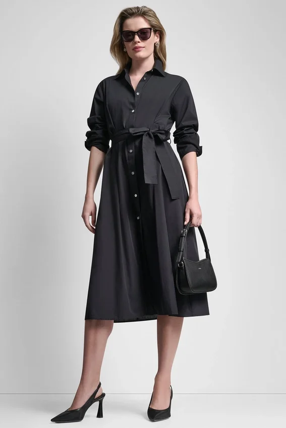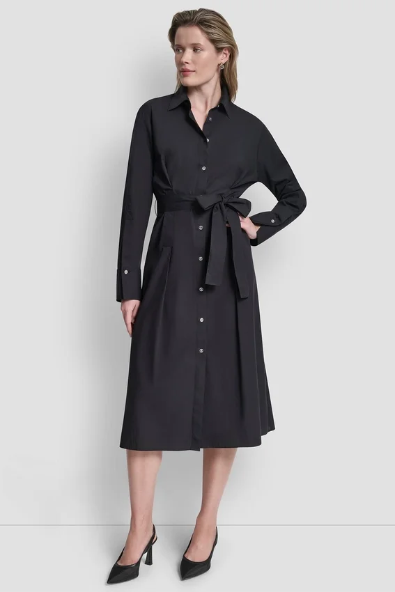A Timeless Shirt Dress with Everyday Versatility, This Long Sleeve Midi Style Features Crisp Cotton Poplin Construction, a Button-Front Placket, and a Removable Belt to Define the Waist.