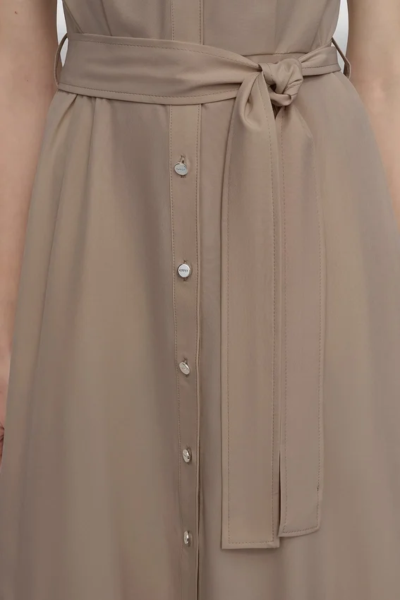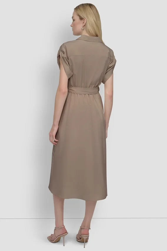 Short Sleeves Collar Neckline Button-Front Closure Tie Waist Midi Length Commuter Fabrication 88% Polyester, 12% Spandex Machine Wash Cold, Tumble Dry Low Imported Style #: Dd61Bg51