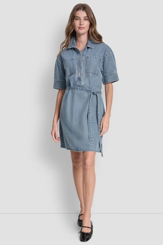 A Timeless Staple with Everyday Ease, This Short Sleeve Shirt Dress is Crafted from Soft Cotton Denim for a Look That Feels Classic Yet Effortless. Finished with Chest Pockets and a Button-Front Closure, It’s the Kind of Piece You’ll Reach for Again and Again.