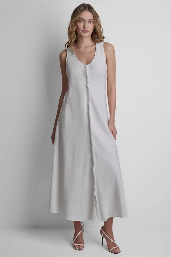 - Sleeveless V-Neck Frayed Seam Maxi Dress