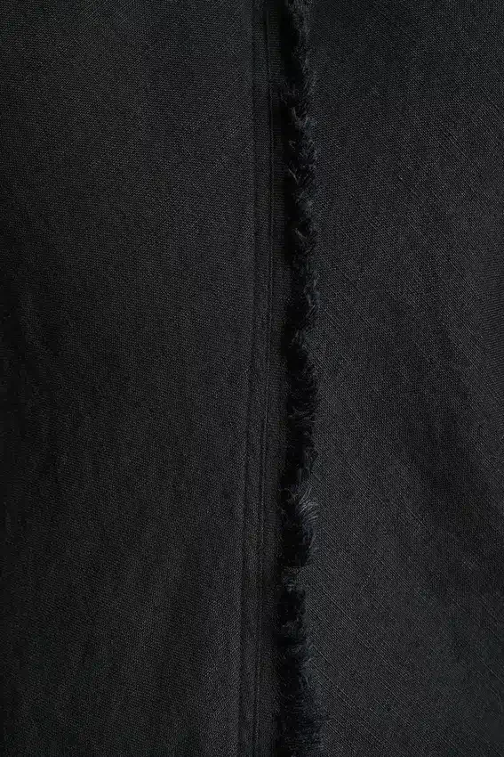 Model Wearing Size Slet This Airy Linen Maxi Set the Tone—Frayed Seam Detailing Pairs Naturally with a Statement Raffia Satchel for an Easy, Sun-Washed Finish.