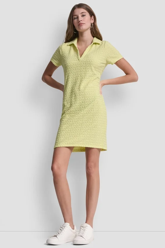 A Sporty Yet Polished Pick, This Logo Jacquard Polo Dress Features a Split-Neck Collar and a Sleek Mini Silhouette for Effortless Style from Day to Night. Softly Structured with Just the Right Stretch, It Moves with Ease While Keeping a Flattering, Slim Fit.