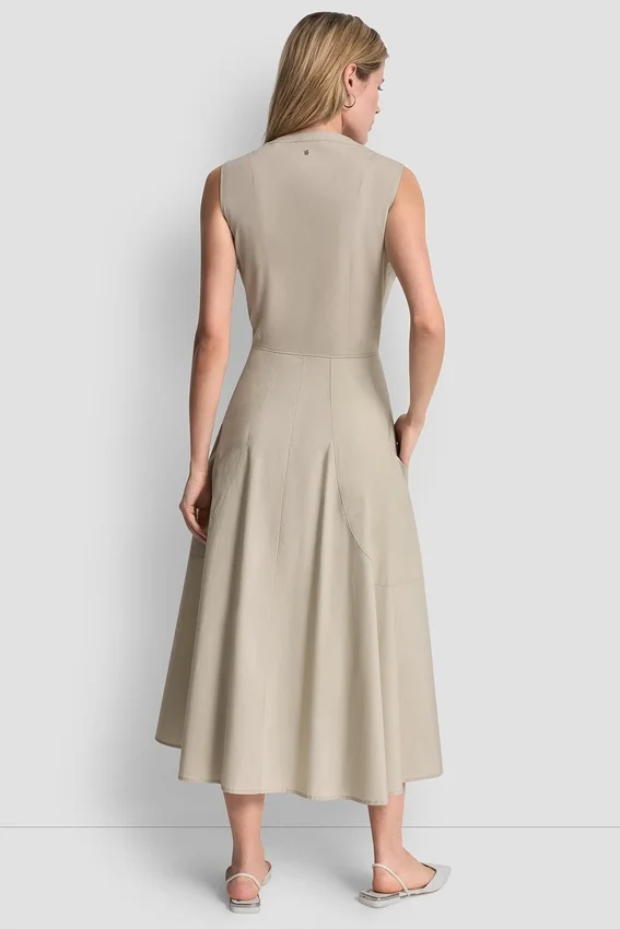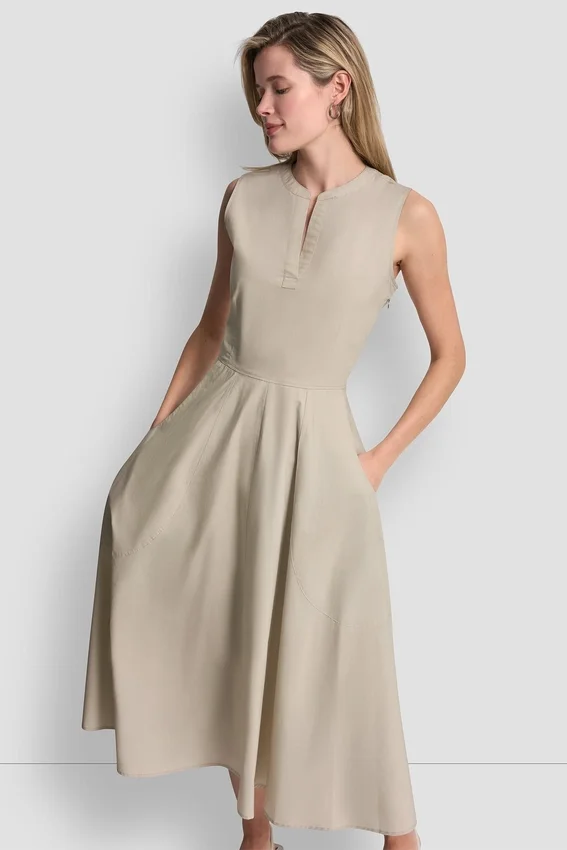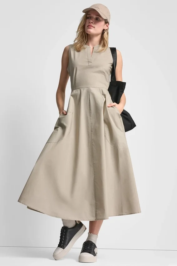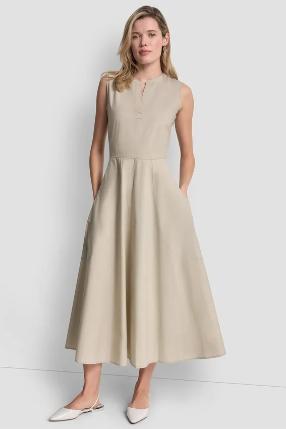 Crisp and Modern, This Sleeveless Midaxi Dress is Crafted in Structured Cotton Poplin for a Polished Yet Breathable Feel. Designed with a Henley-Inspired Neckline and Applied Pockets, It Offers a Clean, Utility-Inspired Look with Effortless Versatility.