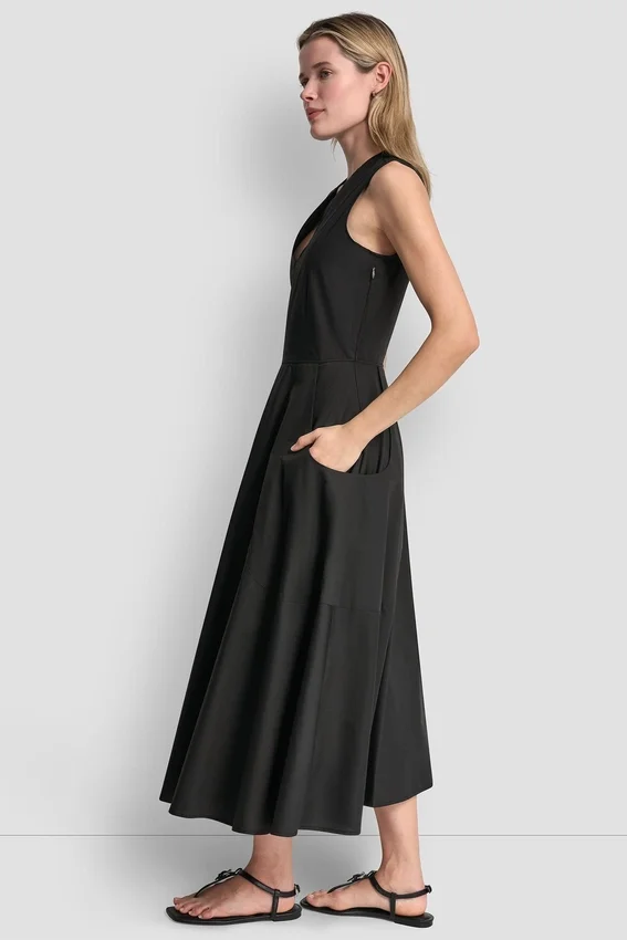 Crisp and Modern, This Sleeveless Midaxi Dress is Crafted in Structured Cotton Poplin for a Polished Yet Breathable Feel. Designed with a Henley-Inspired Neckline and Applied Pockets, It Offers a Clean, Utility-Inspired Look with Effortless Versatility.