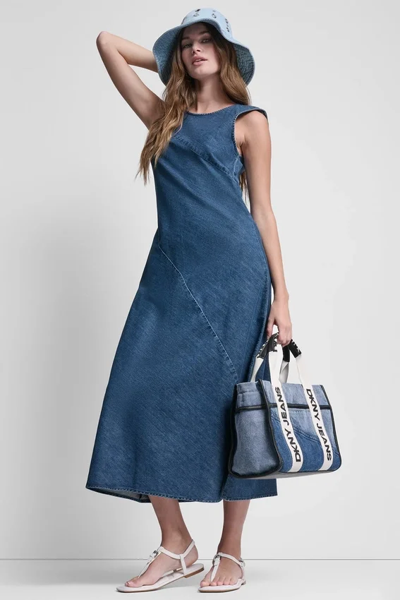 A Relaxed Yet Flattering Midi Dress, This Sleeveless Bias-Cut Style Features a Button-Back Closure and Flowing Silhouette for Effortless Everyday Wear.
