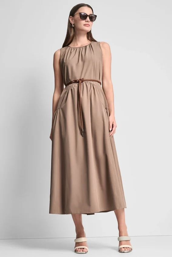 • Sleeveless Crew-Neck Drop-Waist Midi Dress