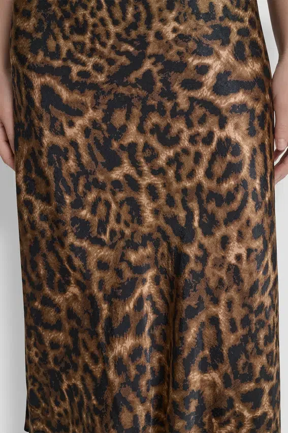 A Sleek and Feminine Silhouette, This Printed Satin Dress Features a Flattering V-Neckline and a Fit-And-Flare Shape for Timeless Elegance.