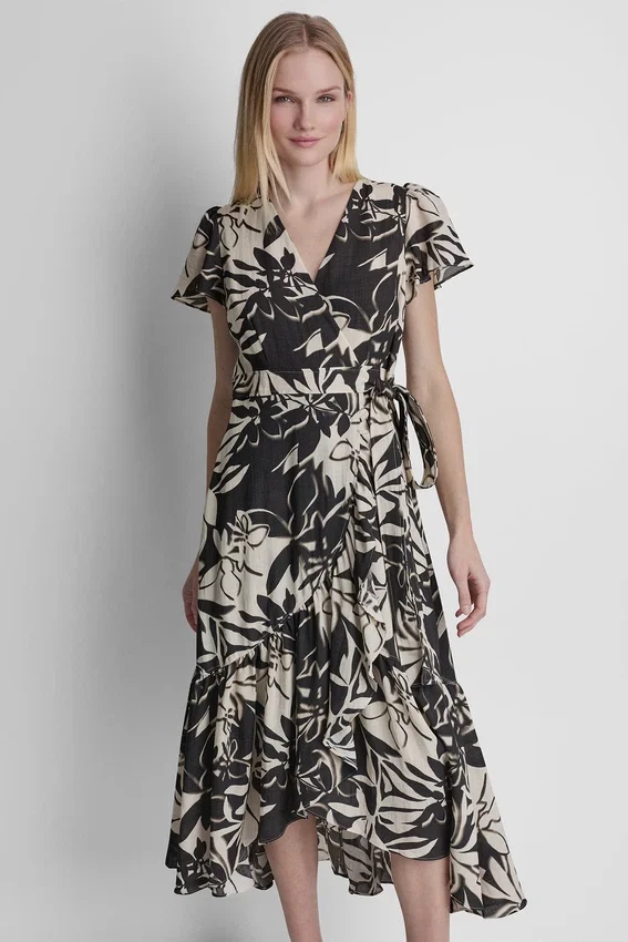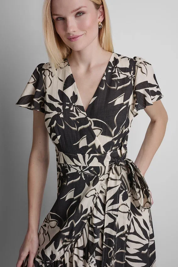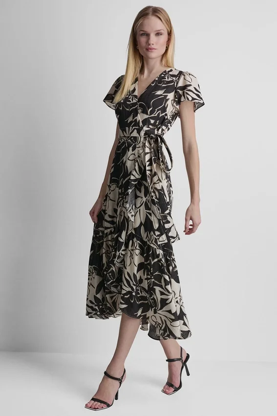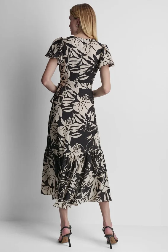 - Short Sleeve Wrap-Effect V-Neck Midi Dress