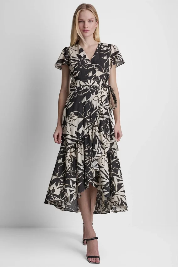 Your Go-To for a Simple Yet Put-Together Look, This Wrap-Effect Midi Layers Under an Open-Stitch Cardi for Crisp Mornings or Goes Solo with Logo Slides as the Day Warms Up.