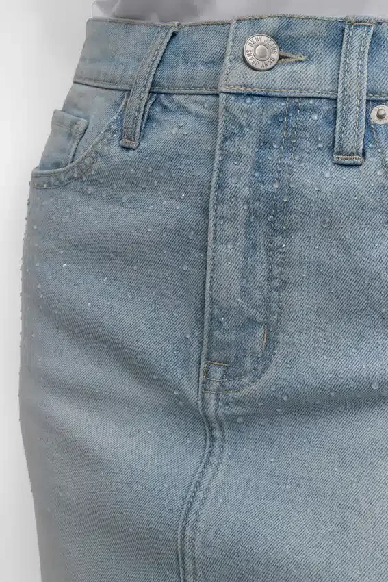A Fresh Take on a Classic, This Denim Maxi Skirt is Designed with a Front Slit for Style and Ease of Movement. The Flattering High-Rise Length Silhouette is Finished with a Raw Hem.