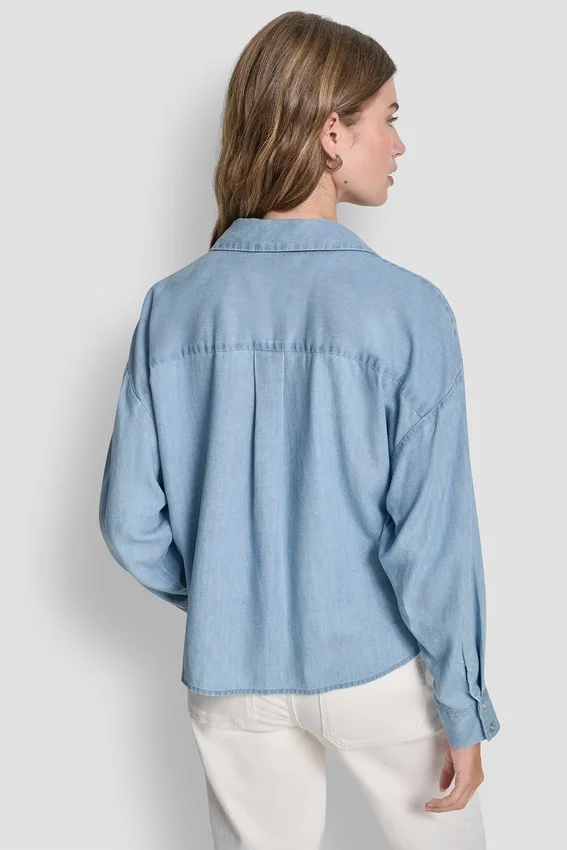Long-Sleeve Collared Shirt Button-Front Placket Fabric: 100% Tencel Care: Machine Wash Cold with Like Colors Only. Remove Promptly. Do Not Bleach. Do Not Use Fabric Softener. Tumble Dry Low. Cool Iron if Needed. Do Not Dry Clean. Imported Style #: Dj5W2167