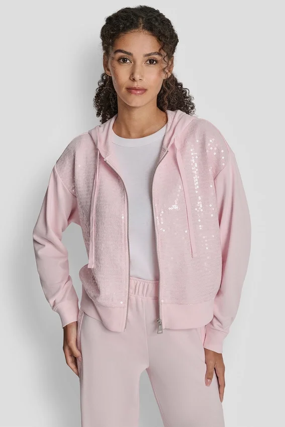 Sequin Zip Front Hoodie
