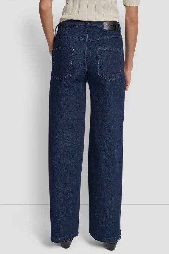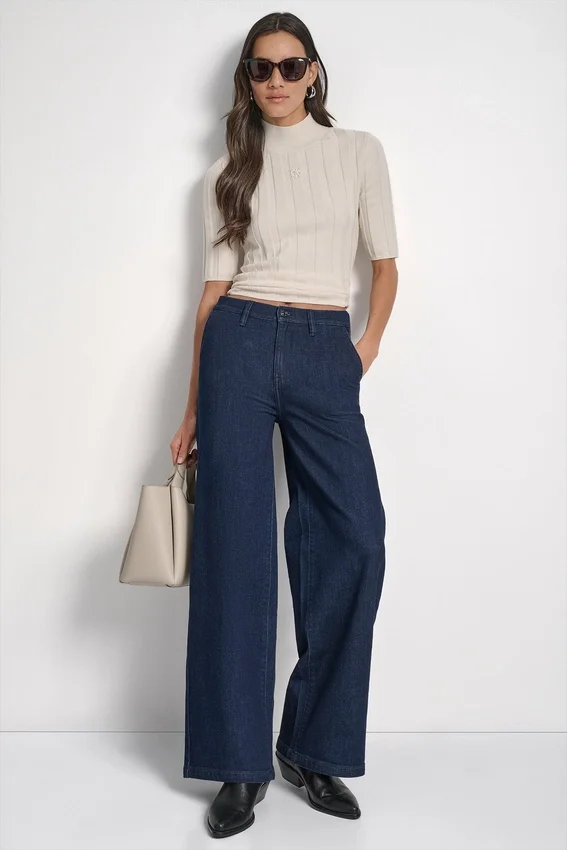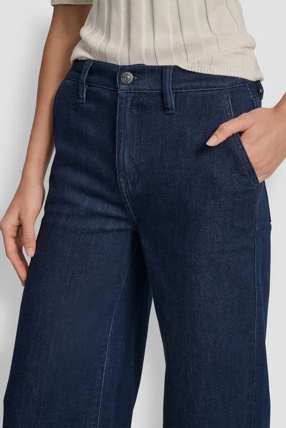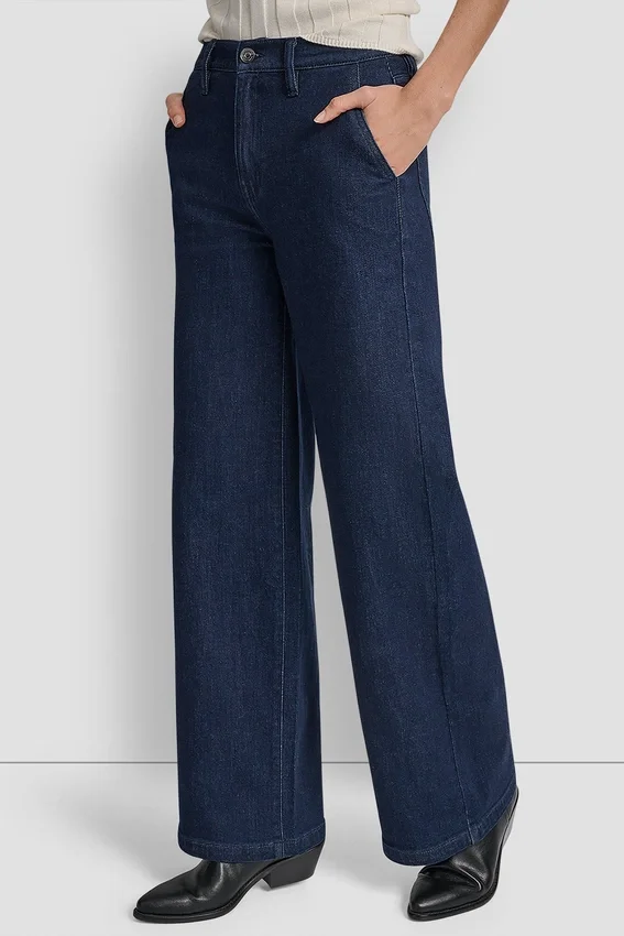 Polished Yet Relaxed, These High Rise Tailored Trousers in a Dark Rinse Denim Balance Structure with Ease in a Wide-Leg Silhouette.