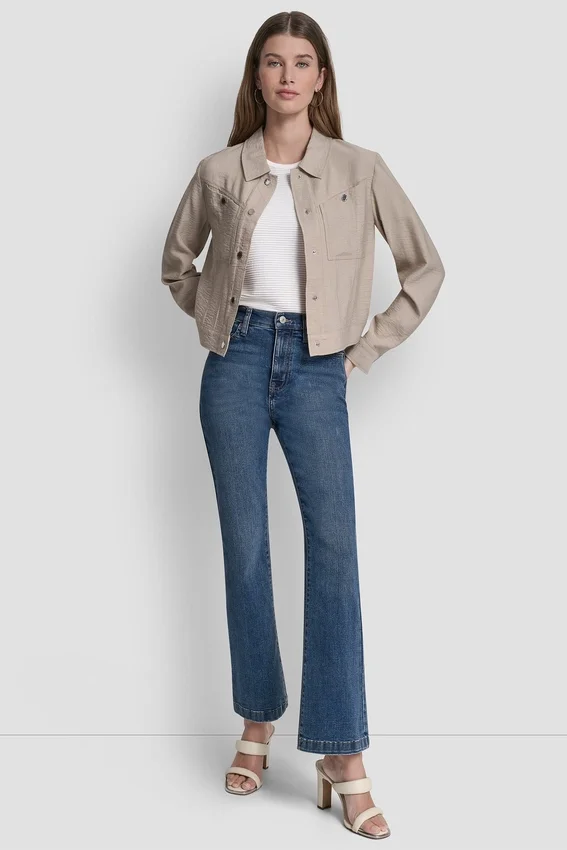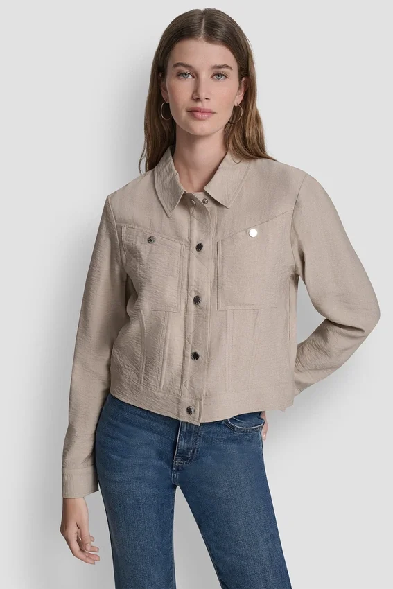 • Cropped Trucker Jacket in Textured Crinkle Dressing Fabric