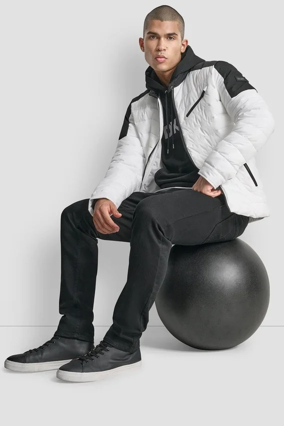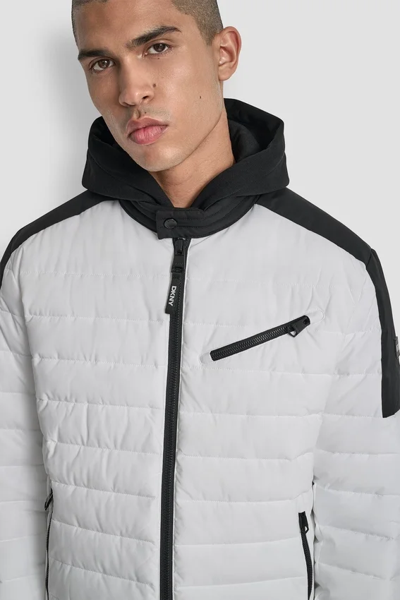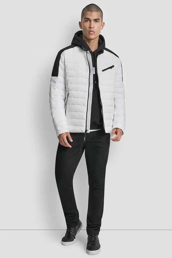 Lightweight Moto Puffer Jacket Front Zip Closure; Moto-Inspired Quilting Shell: 100% Nylon with Clear Coating Machine Wash Cold with Like Colors; Gentle Cycle; Tumble Dry Low; Only Non-Chlorine Bleach When Needed; Do Not Iron Imported Style #: Dx551855
