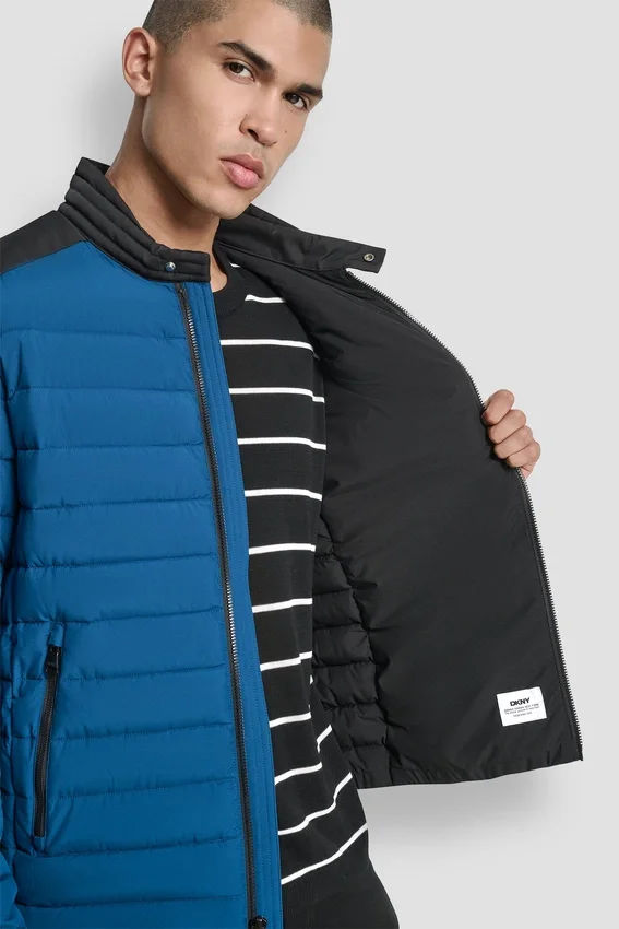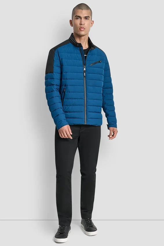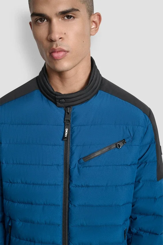 Lightweight Moto Puffer Jacket Front Zip Closure; Moto-Inspired Quilting Shell: 100% Nylon with Clear Coating Machine Wash Cold with Like Colors; Gentle Cycle; Tumble Dry Low; Only Non-Chlorine Bleach When Needed; Do Not Iron Imported Style #: Dx551855