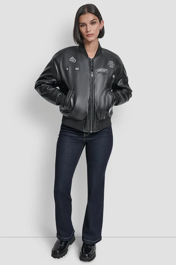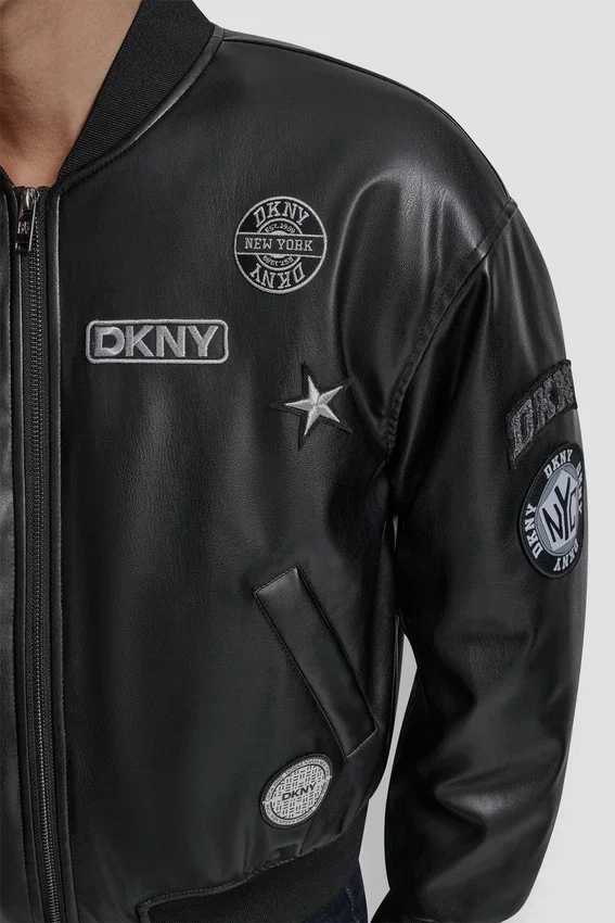 Edgy and Modern, This Bomber Jacket Elevates Casual Looks with Its Pu Pins and Patch Details