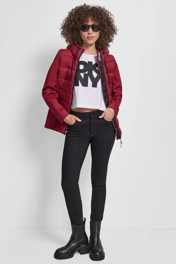 - Straight Silhouette with a Modern Channel-Quilted Body