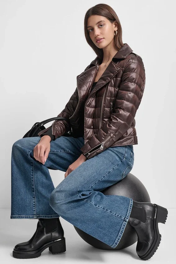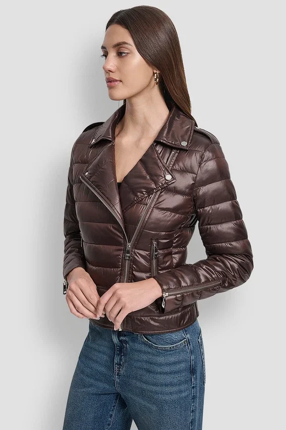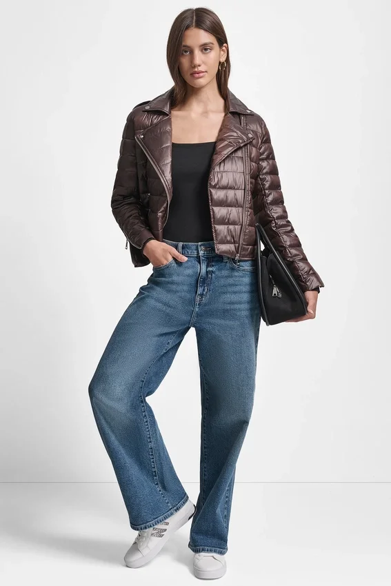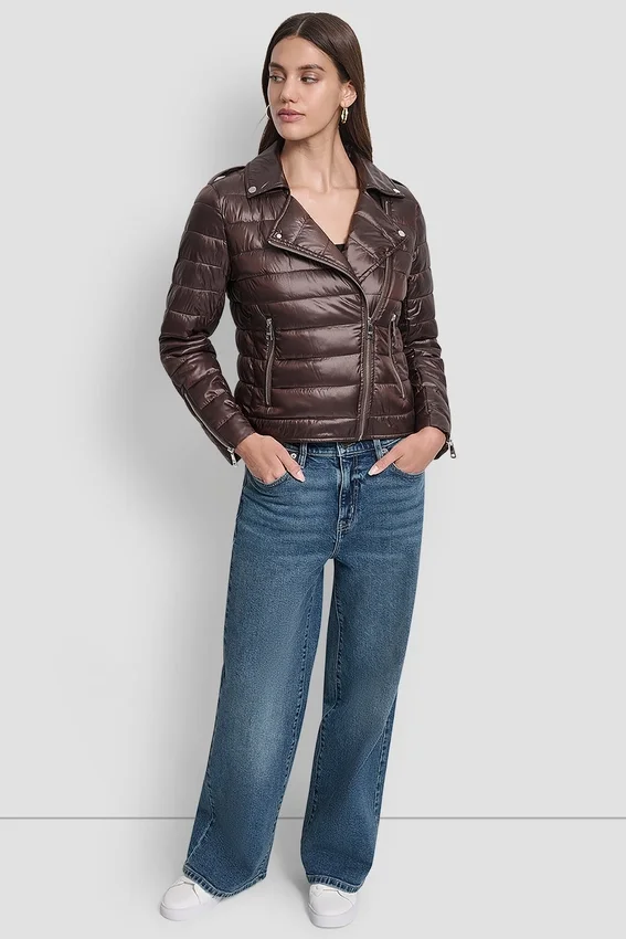 • Spread Collar Moto-Style Puffer Jacket