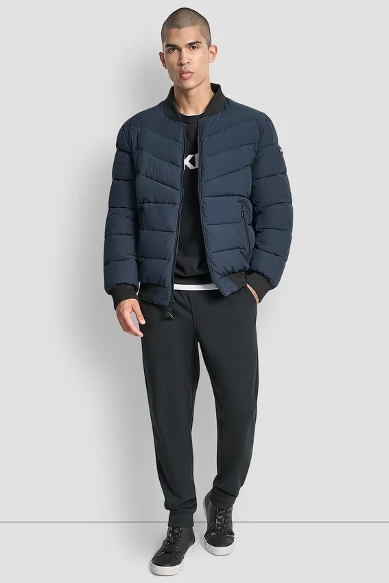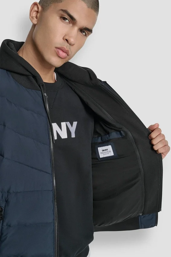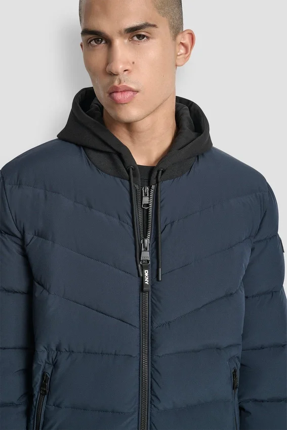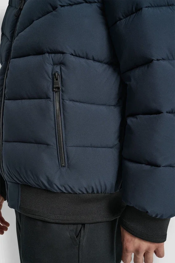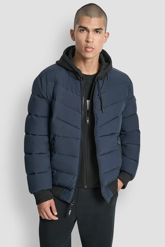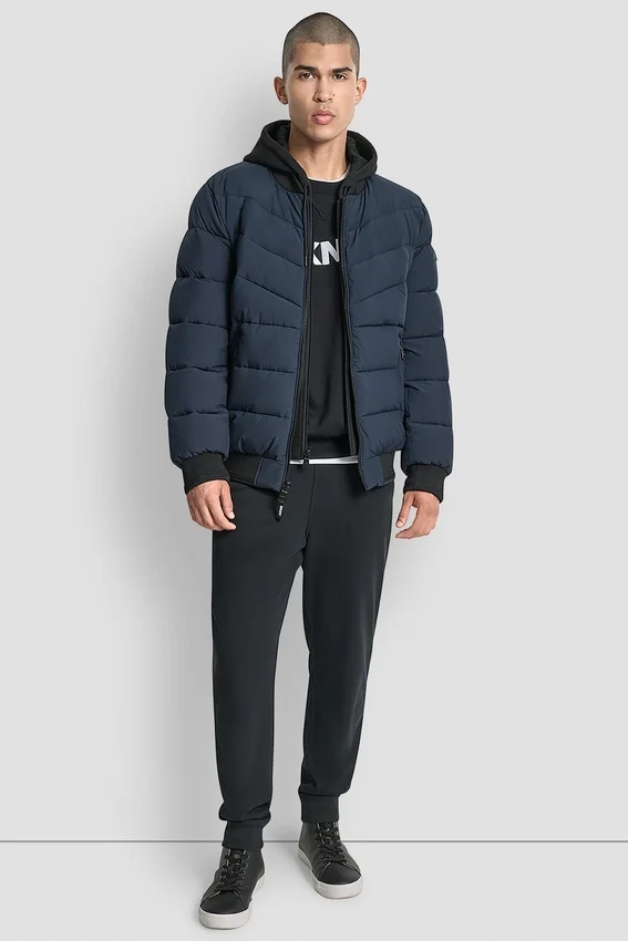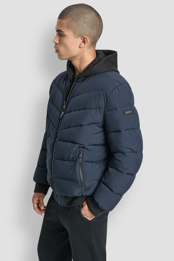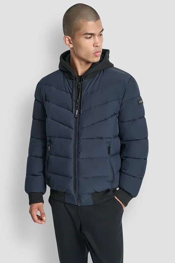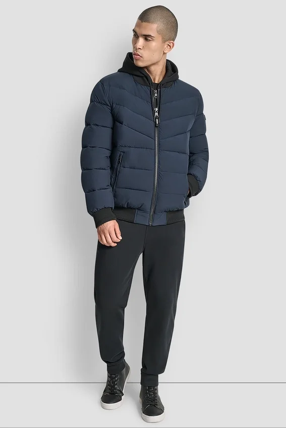 A Bomber Silhouette Meets Puffer Warmth—Complete with a Hooded Bib for Extra Coverage When Temps Drop.