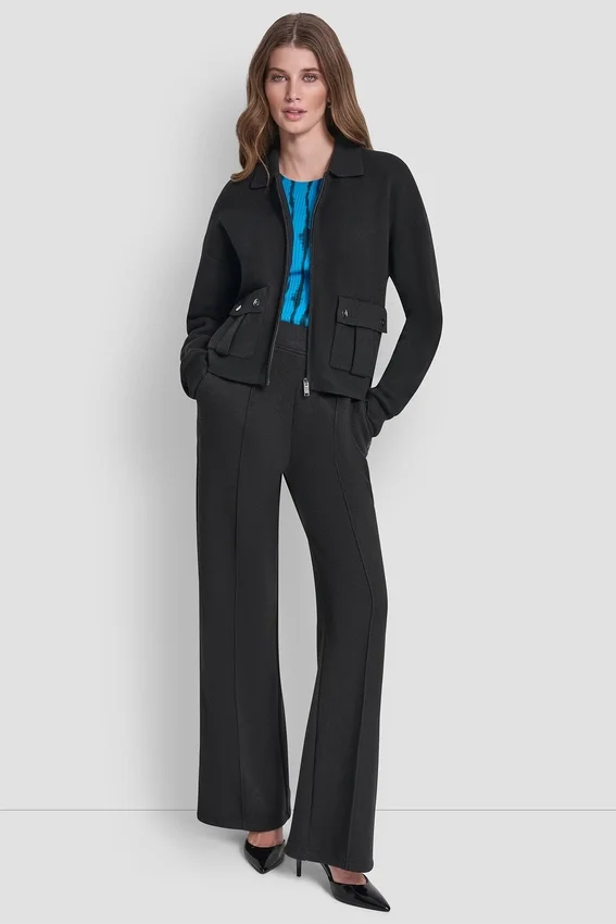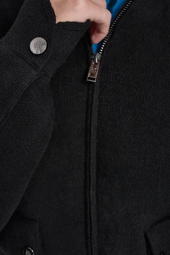 Long Sleeve Point Collar Sweater Jacket Zip Fastening; Front Snap-Flap Pockets Unlined Cotton-Blend Sweater-Knit: 55% Cotton, 32% Recycled Polyester, 8% Nylon, 5% Wool Dry Clean or Machine Wash Cold Inside out, Line Dry Imported Style #: P5Jxab60
