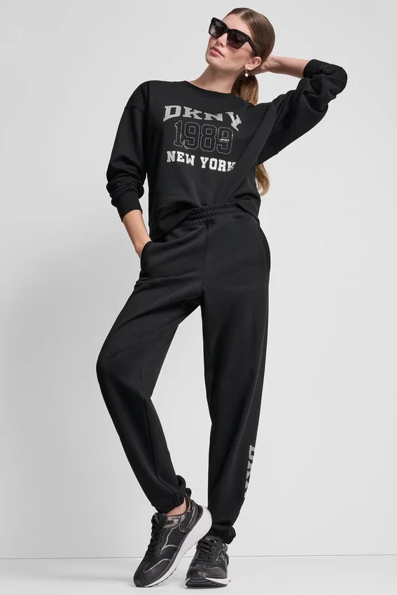 Sporty with a Touch of Shine, This High-Rise Jogger Features a Dkny 1989 Rhinestud Logo Detail on Soft Logo Terry Fabrication. Designed with a Relaxed Fit for All-Day Comfort, It’s Perfect for Elevated Casual Styling.