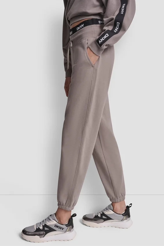 High-Rise Logo Waist-Tab Jogger with Elasticized Leg Openings Pulls on, with Drawstring Elastic Waist Diagonal Hip Pockets Cotton-Blend: 60% Cotton, 40% Polyester Machine Wash Cold Gentle Cycle—Do Not Dry Clean—Lay Flat to Dry Imported Style #: Dp6P3857