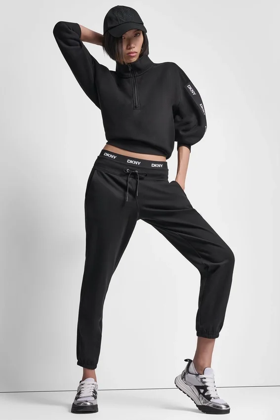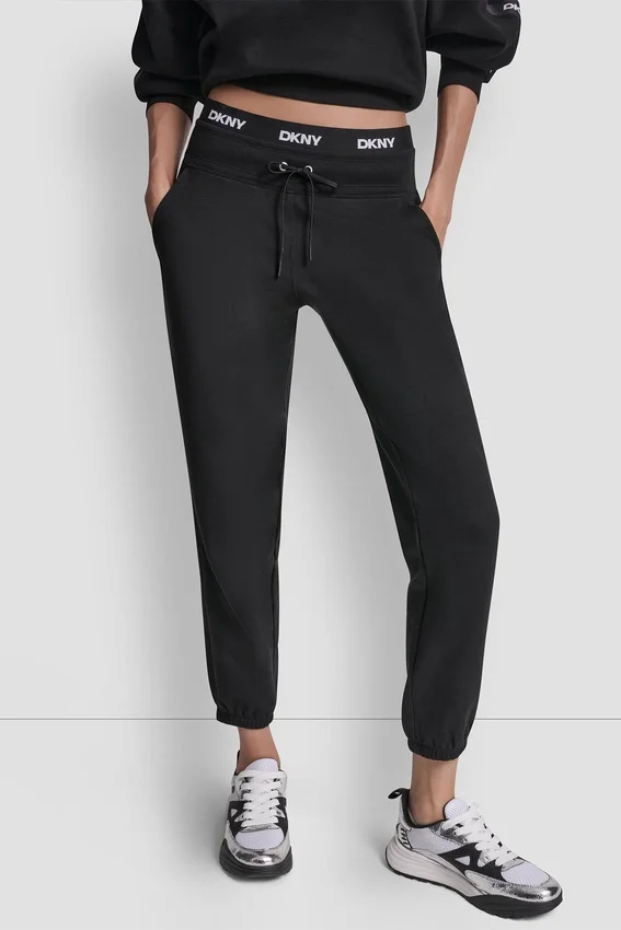 High-Rise Logo Waist-Tab Jogger with Elasticized Leg Openings Pulls on, with Drawstring Elastic Waist Diagonal Hip Pockets Cotton-Blend: 60% Cotton, 40% Polyester Machine Wash Cold Gentle Cycle—Do Not Dry Clean—Lay Flat to Dry Imported Style #: Dp6P3857