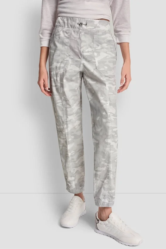 - High-Rise Seamed Slim Utility Jogger with Grosgrain Trim and Elastic Leg Openings