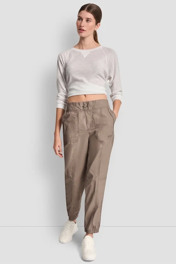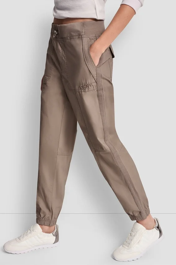 - High-Rise Seamed Slim Utility Jogger with Grosgrain Trim and Elastic Leg Openings