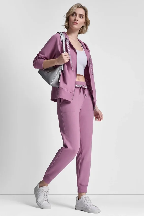Mid-Rise Two-Tone Logo Drawstring Skinny Cuffed Ankle Jogger Pulls on, with Two-Tone Logo-Print Drawcord Waist Two Diagonal Hip Pockets Unlined Peached Stretch Cotton-Fleece: 95% Cotton, 5% Elastane (Spandex) Machine Wash Cold Inside out—Do Not Bleach or Use Fabric Softener—Tumble Dry Low and Remove Promptly Imported S